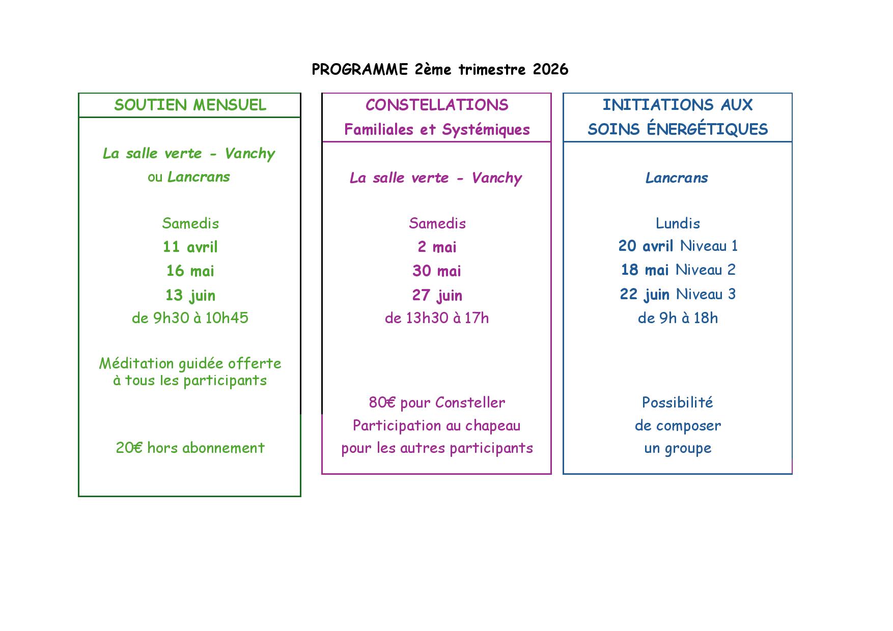 Programme 2ème trimestre 2026